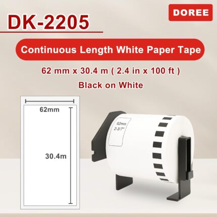Compatible for Brother DK-22205 Label Printers – 62mm x 30.48m Continuous Paper Labels, Black on White, for QL-500, QL-700, QL-710W, QL-800, QL-810W, QL-820NWB, QL-1050