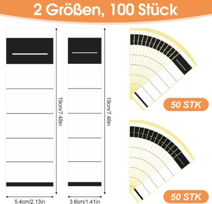 Self-Adhesive Folder Spine, Wide Folder Spine Labels for Folders, Folder Labels, Self-Adhesive, Writeable, for Office, Library, Archiving (White, 100 Pieces, 3.6 x 19 cm + 5.4 x 19 cm)