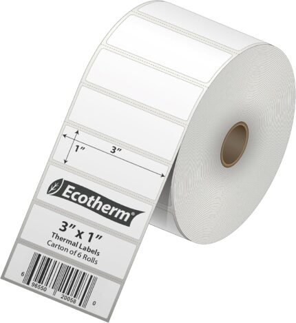 3 x 1 Direct Thermal Paper Label Stickers – 15000 Labels – 2500 Labels Per Roll – 6 Rolls – for Datamax, Intermec, Sato, TSC, Zebra Direct Thermal Printers