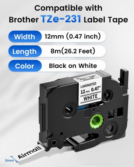 5 X Compatible with Brother 12mm 0.47 Laminated Tape TZe-231 Black on White for Brother Label Printer Tape Compatible with P-Touch Label Maker PT-E110 H100R H110 H101C