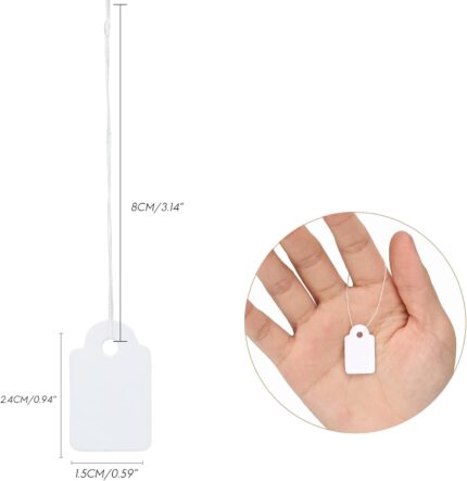 ASelected 1000 Pcs White Price Tags with String, 28x45mm Writable Price Labels Paper Blank Strung Price Tags, Kraft Hang Price Tag for Clothing, Jewelry, Gifts Display Price