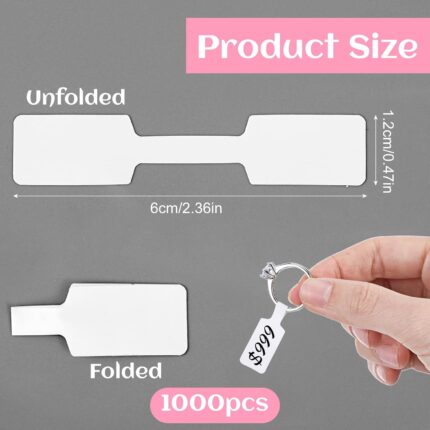 Bewudy 1000 Pcs Classic Jewelry Price Tags Labels Self Adhesive, Rings Tags Glossy White Blank Price Tags, for Jewelry, Bracelet, Ring, Necklace, Earring, Clothing Display (2 Roll, 500 Labels/Roll)