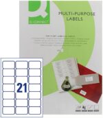 Streamline your organization with the Q-Connect Multipurpose Labels. As the UK’s trusted brand for quality office supplies, Q-Connect delivers reliable performance at an attractive price. This bulk pack contains 500 sheets, each with 21 precision-cut white labels, providing a massive total of 10,500 labels for all your labeling needs.