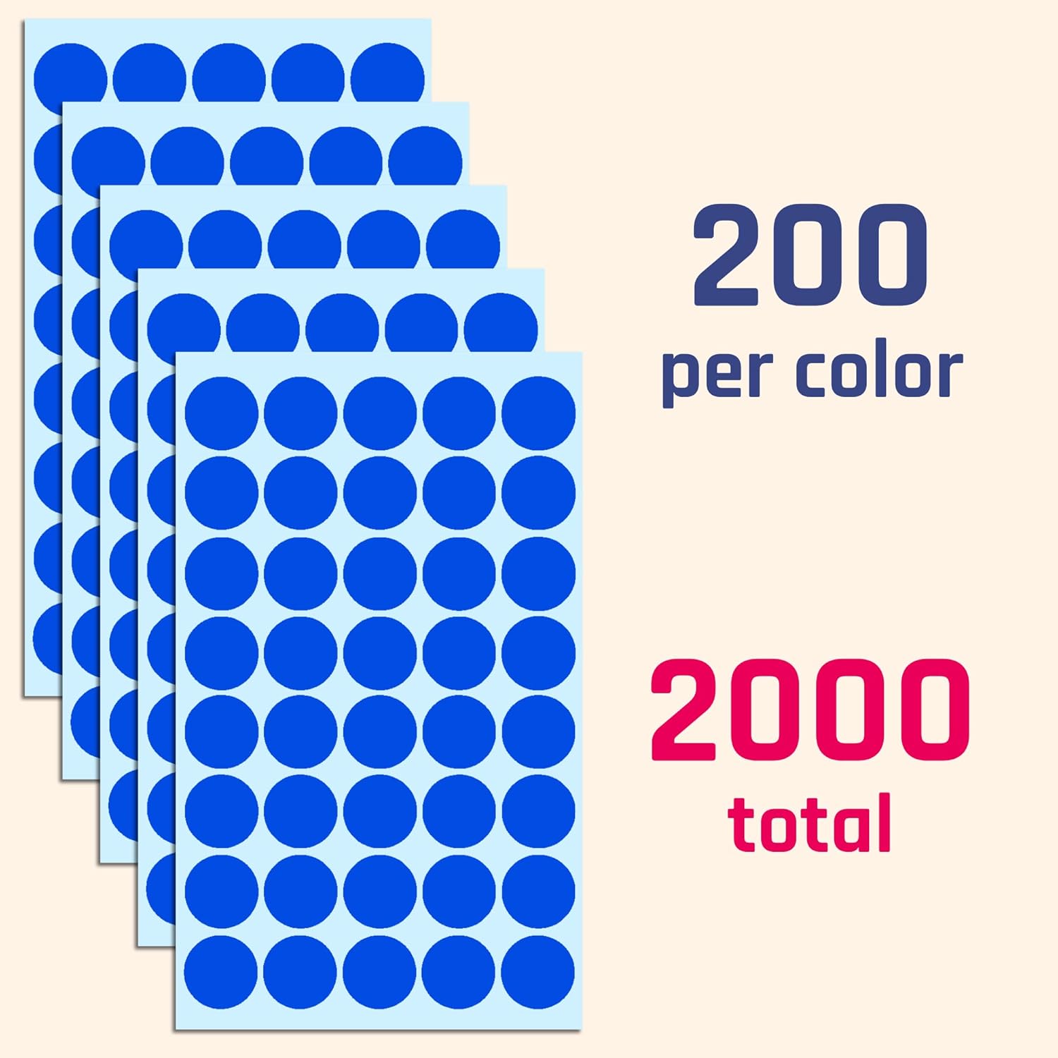High Quantity Value: 2,000 premium stickers (200 labels per color)