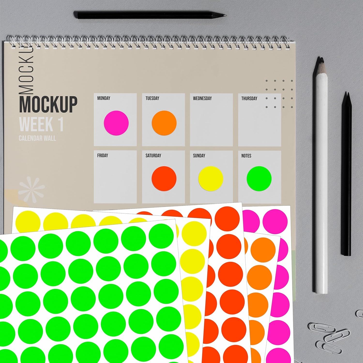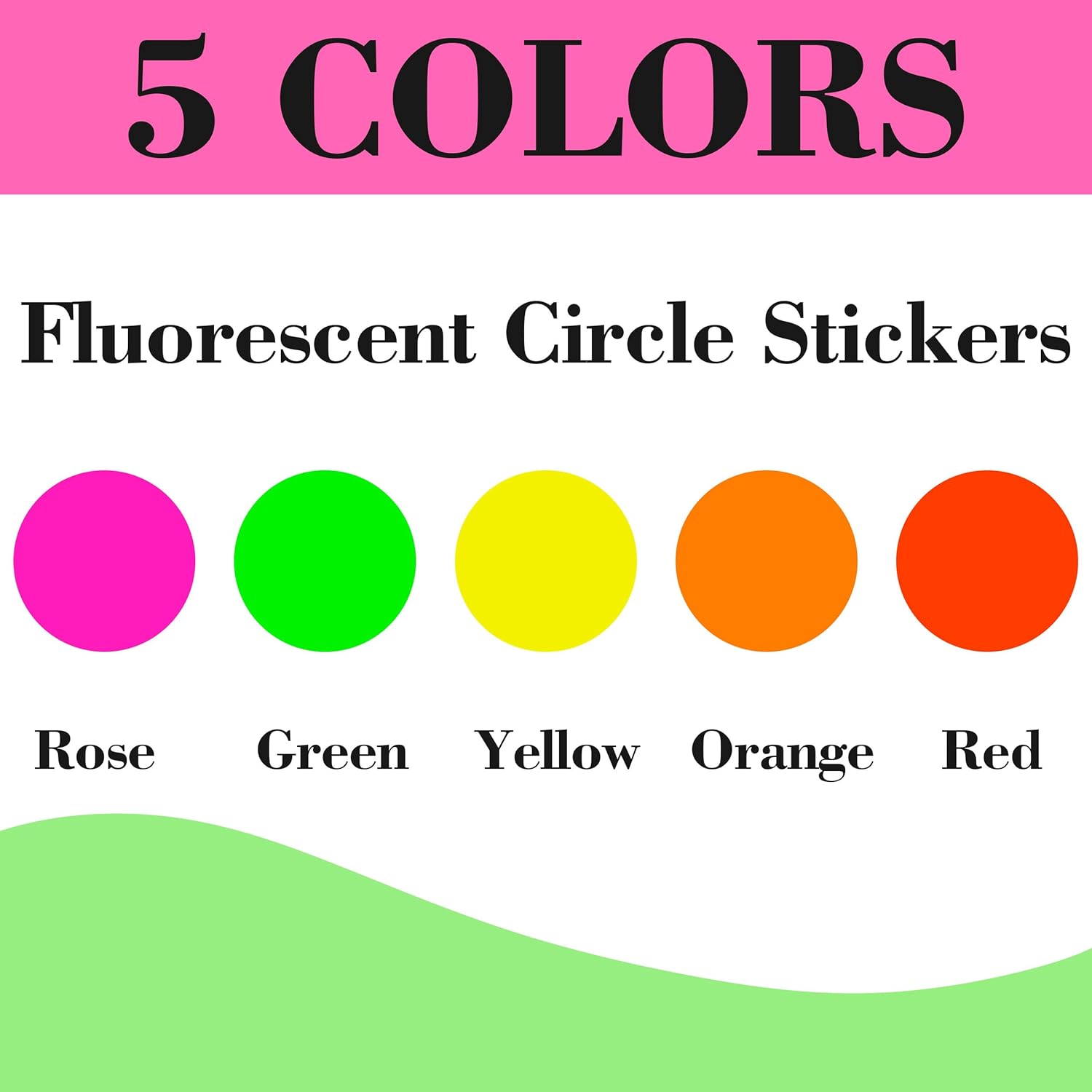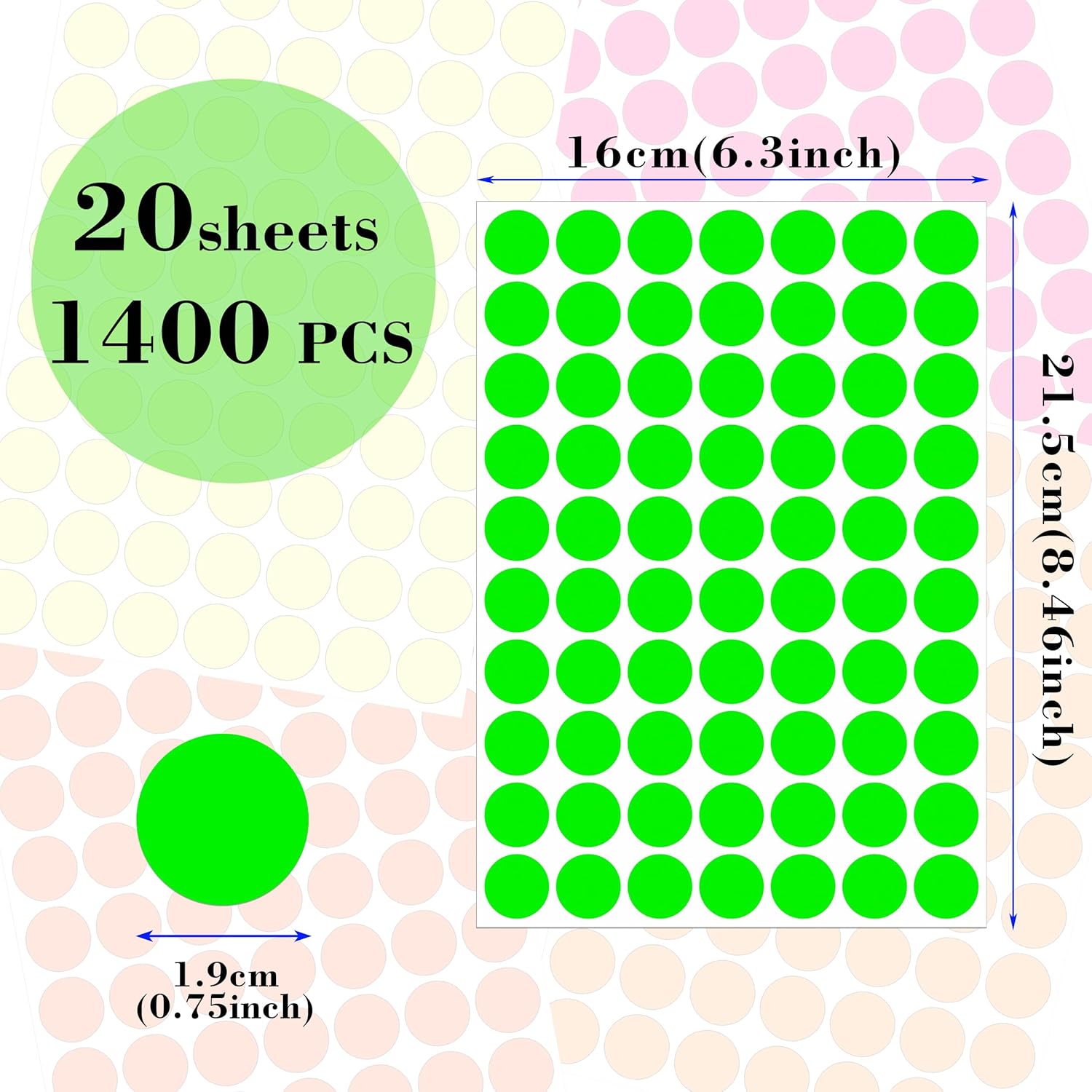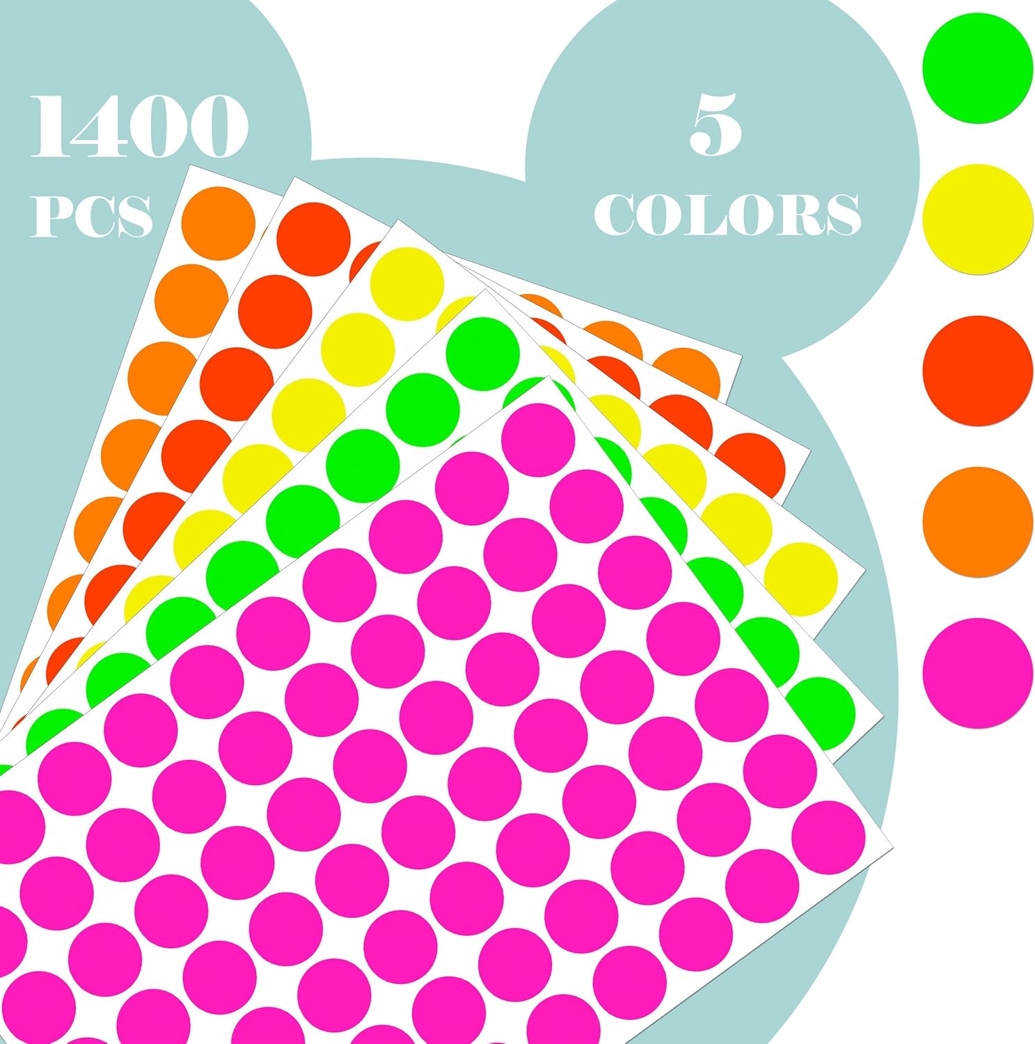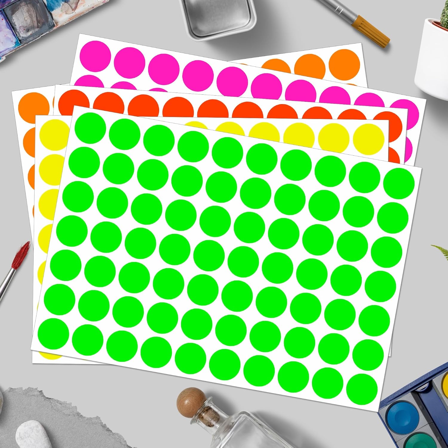 Sticky Dot Stickers 3/4 Inch (19mm) Round Fluorescent Neon Labels – 1400 Pack