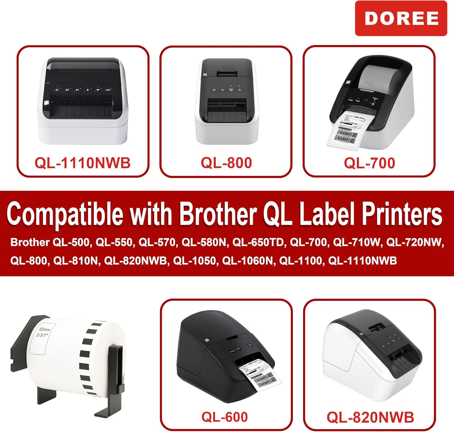 This DOREE DK-22205 label roll is guaranteed to be compatible with the following Brother P-Touch QL models: