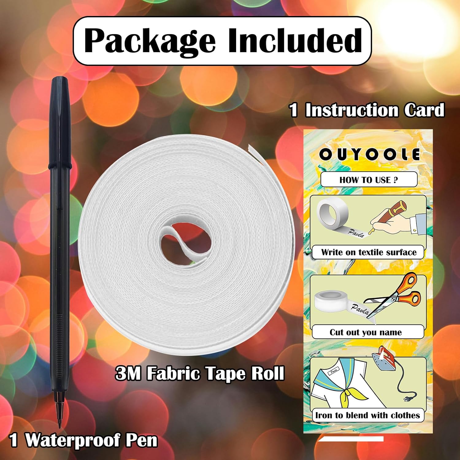 OUYOOLE Iron-On Name Labels for Clothes – 3m x 2cm Kid Name Labels with Pen