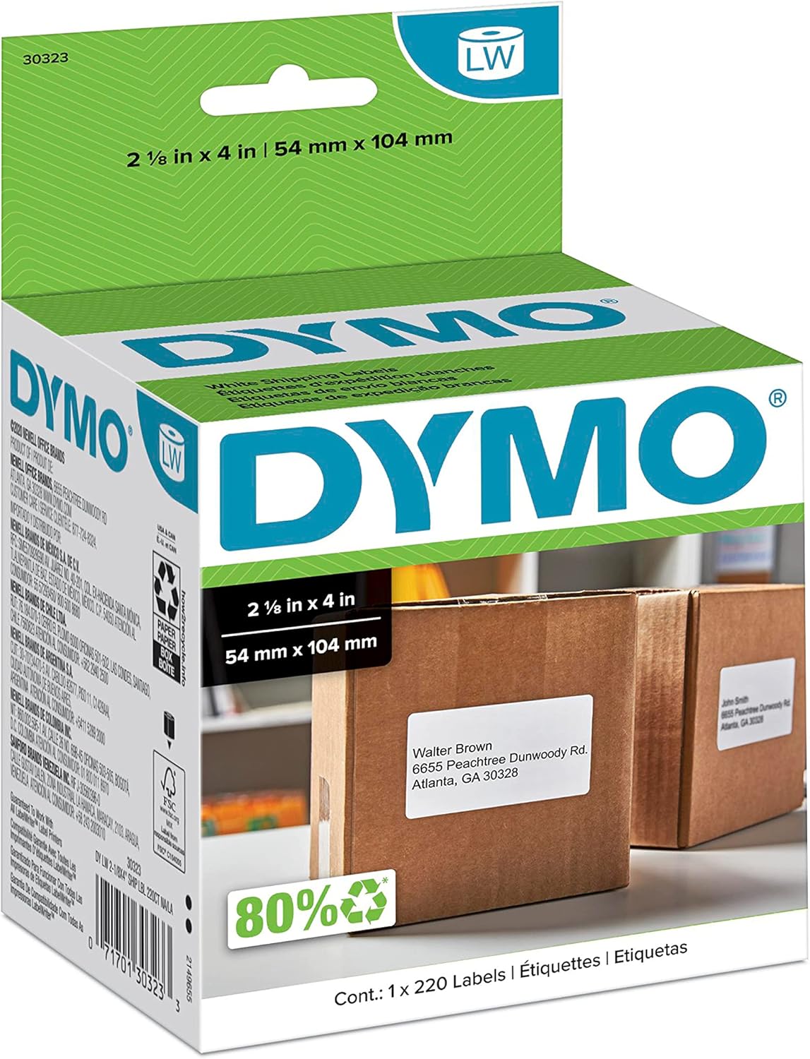 DYMO LW Standard Shipping Labels for LabelWriter Label Printers, White, 2-1/8″ x 4″, 220 Labels/Roll (30323)