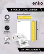 Your purchase includes 8 full rolls of premium 4″ x 6″ labels, totaling 1,760 labels. Each individual roll contains 220 labels, providing an organized and efficient labeling solution for home offices, small businesses, and shipping departments.