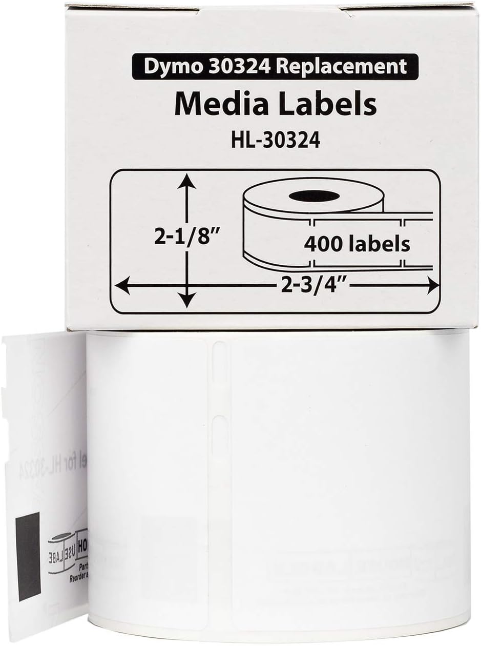 Experience premium performance without the premium price. Our HOUSELABELS compatible DYMO 30324 media labels deliver the same reliable, crystal-clear print quality as the original brand at a significantly lower cost. Engineered for seamless integration, these labels work flawlessly with your DYMO LabelWriter, CoStar LabelWriter, or Rollo printer, minimizing frustrating jams and misfeeds when used correctly.