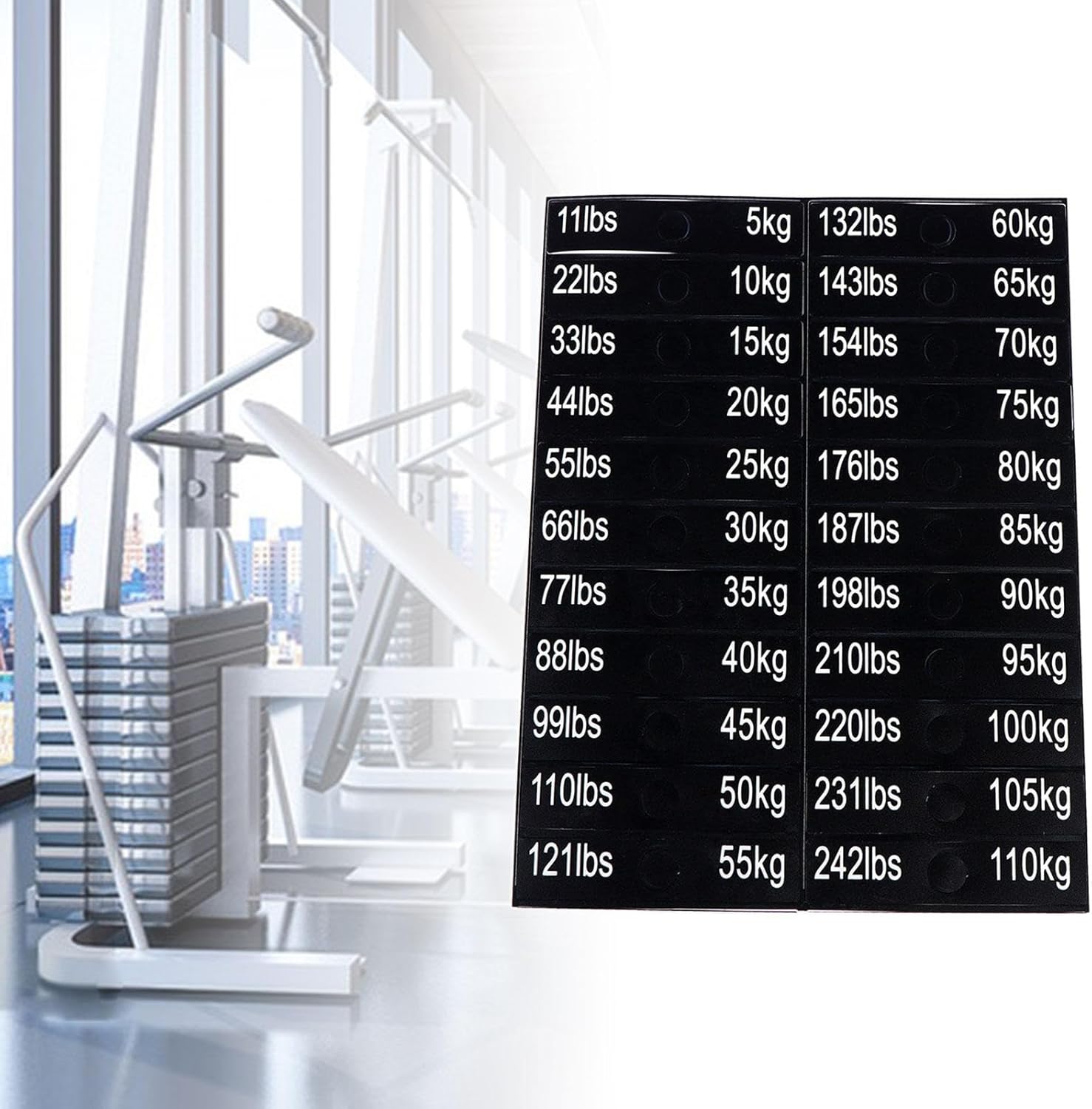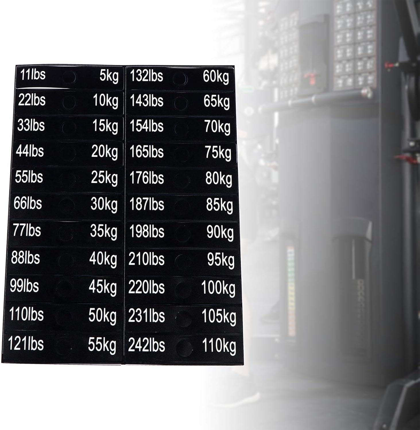 Weight Stack Labels for Gym Equipment – 5 kg to 110 kg / 11 lbs to 242 lbs – Self-Adhesive Number Stickers