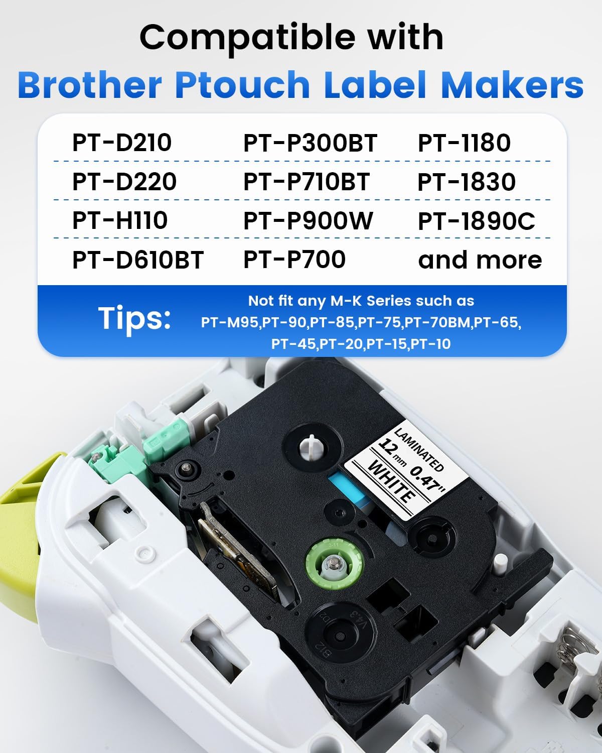 Not Compatible With: M-K tape PTouch printers (PT-65, PT-45, M95, etc)
