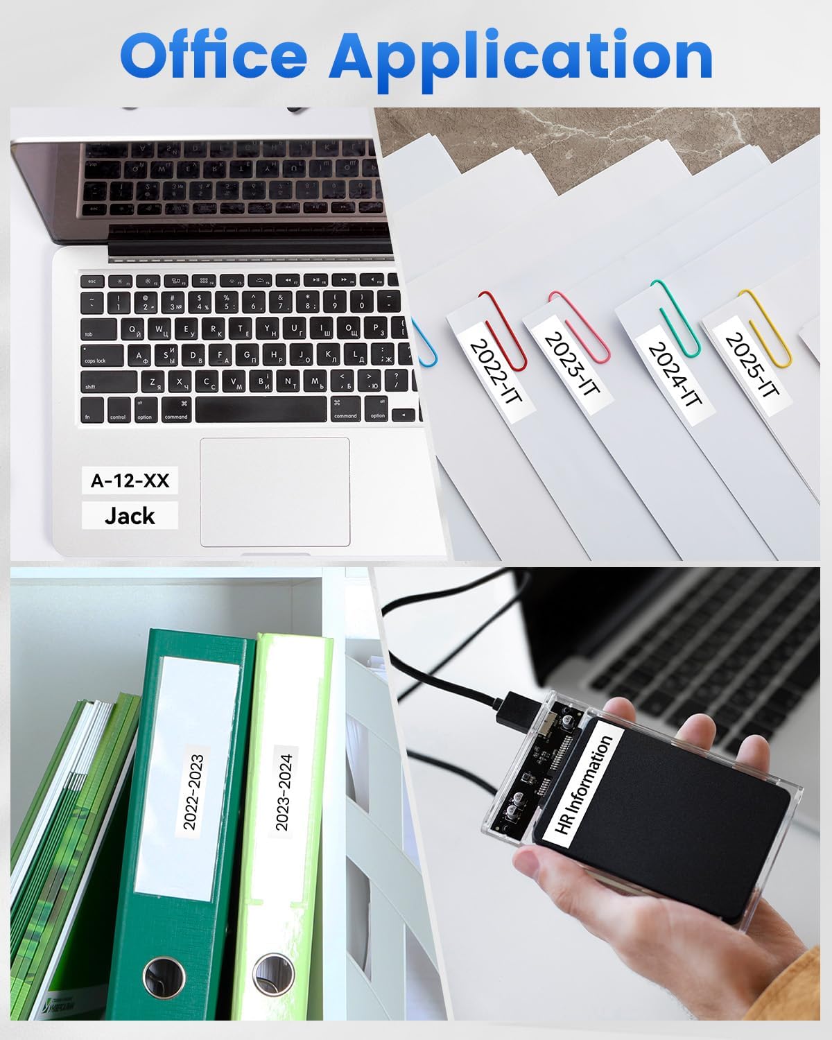Ideal for organizing in offices, schools, hotels, restaurants, warehouses, and supermarkets. Perfect for labeling cables, storage boxes, equipment, and retail merchandise. Creates professional-looking labels that withstand demanding environments while maintaining readability.