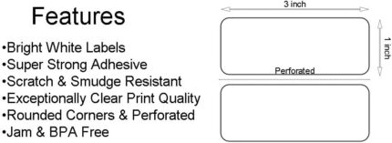 Direct Thermal Labels – 3″ x 1″ – Perforated UPC Barcode FBA Address Labels with Premium Adhesive, Compatible with Zebra & Rollo Label Printers – 4 Rolls