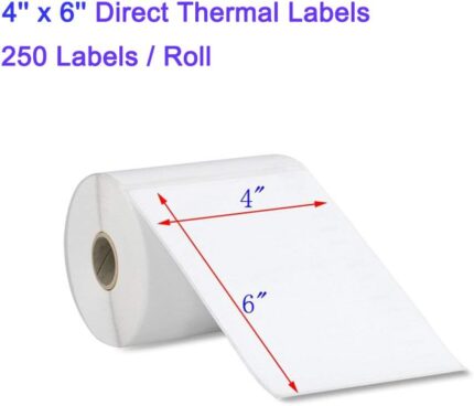 RBHK 20 Rolls 4×6 Direct Thermal Labels for Zebra Printer, 250 Blank Shipping Labels per Roll