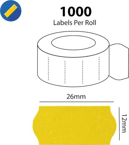 Swift 26 x 12 mm Price Gun Labels Yellow 5 Rolls 5,000 Stickers CT4 Wavy Edge Pricemarking Tags Fits Many Pricing Labellers