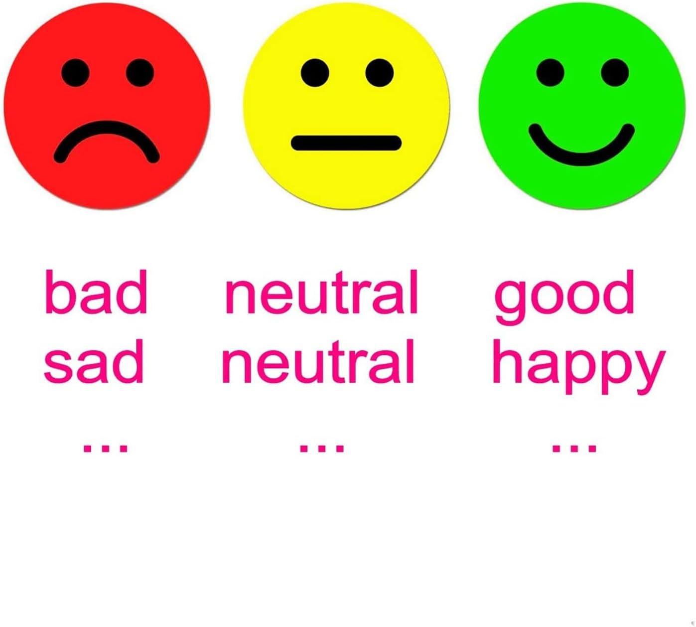 - Multi-Emotion Expressions – Red, yellow, and green round faces depict happy, sad, and neutral moods through simple visual designs