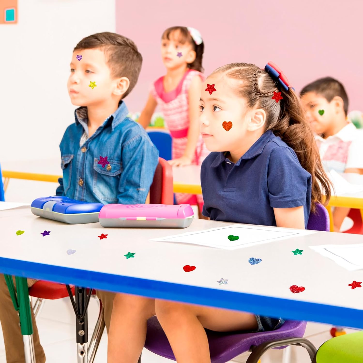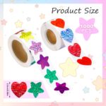 FRIUSATE 1000pcs Shiny Star & Heart Reward Stickers for Kids, Teachers & Crafts