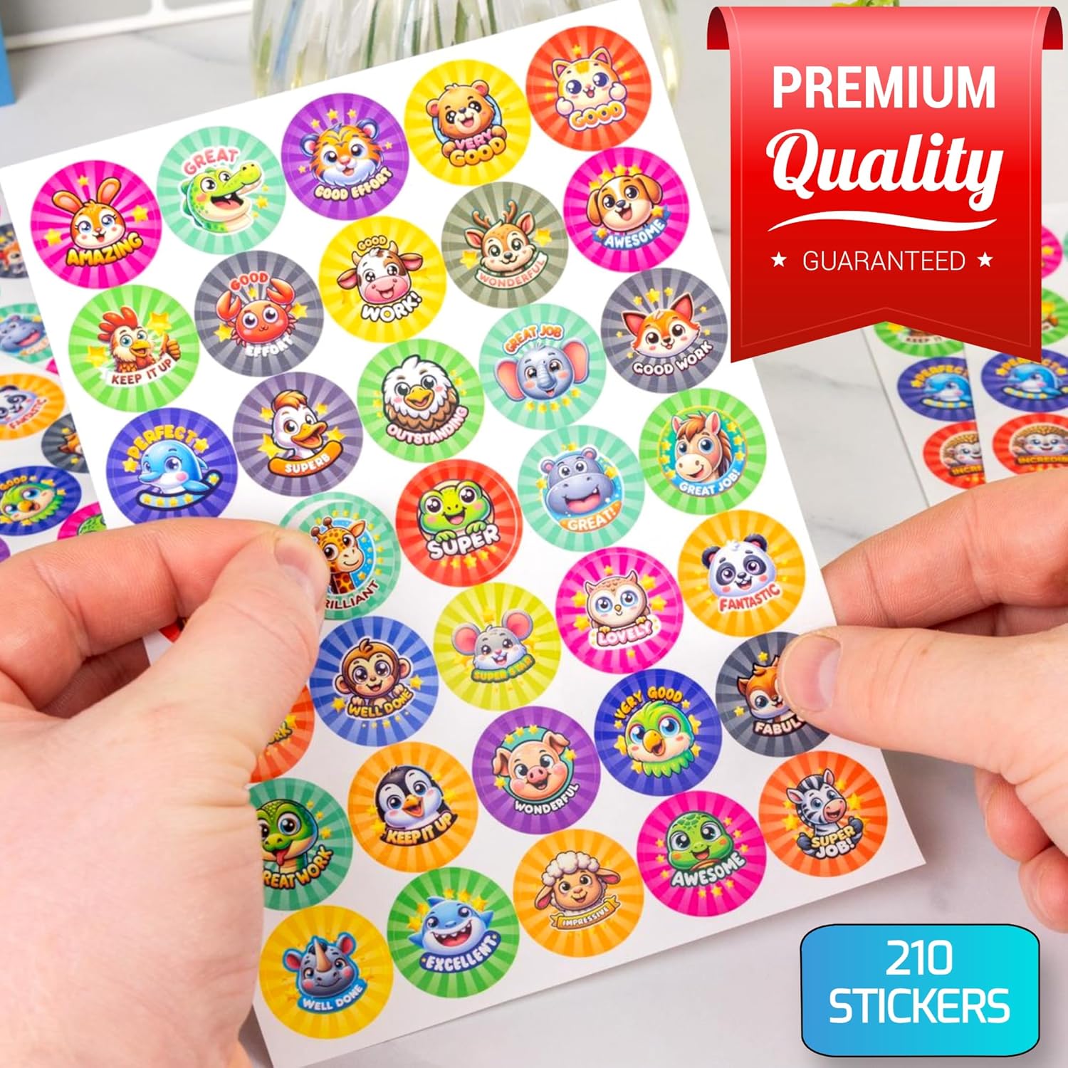 Celebrate achievements big and small with Innoveem’s Premium Well Done Stickers! Designed for teachers, parents, and educators, this pack of 210 vibrant animal-themed stickers motivates toddlers and school-aged children through creative reinforcement. Perfect for sticker charts, potty training, classroom rewards, or praising good behavior at home.