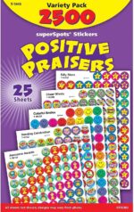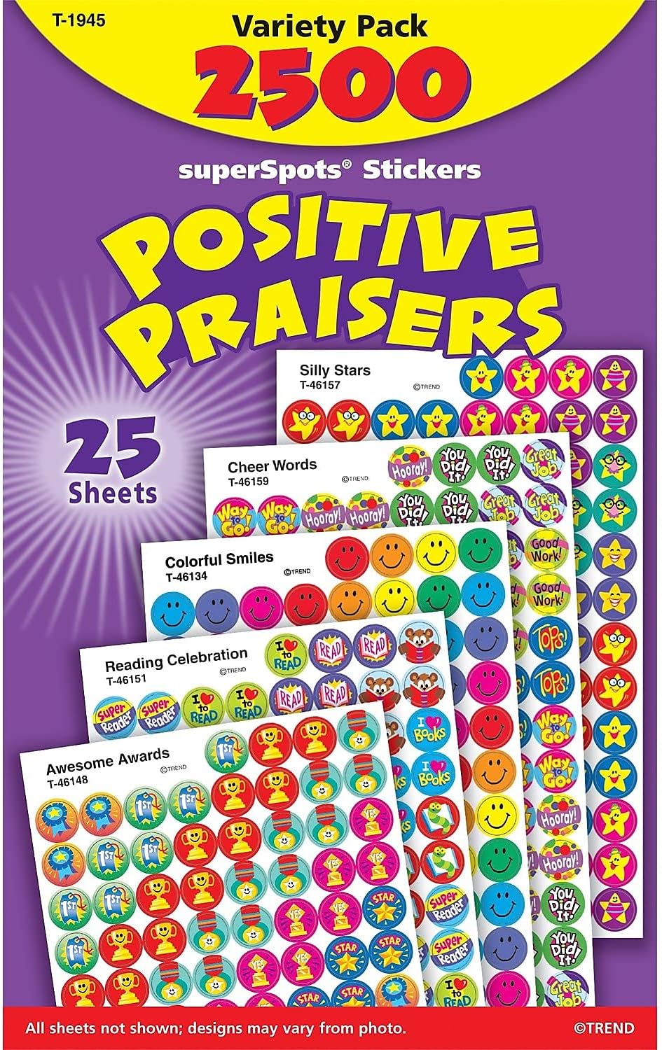 Discover the ultimate sticker pack for motivation, celebration, and creative fun! The Trend Enterprises superSpots pack features an incredible variety of 68 unique, bright designs perfect for rewarding achievement, encouraging good behavior, and sparking joy. With 2,500 stickers across 25 sheets, this versatile set is ideal for homework rewards, incentive charts, crafts, trading, and collecting. Safe for all ages (3+) and photo-safe, these acid-free, nontoxic stickers are a must-have for teachers, parents, and anyone who loves to celebrate success.