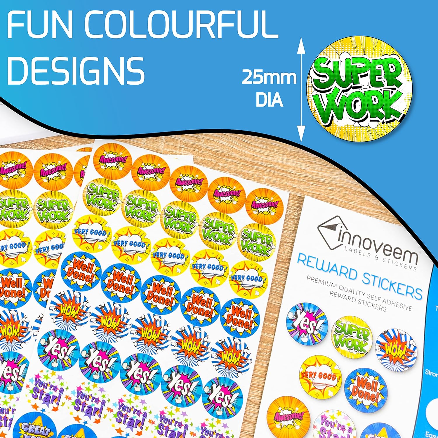 Well Done Stickers for Children – 200 Colourful Achievement Reward Stickers Pack by Innoveem