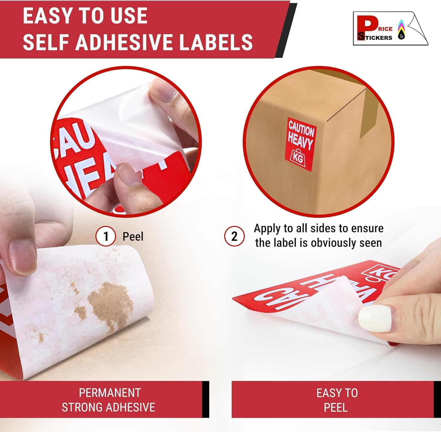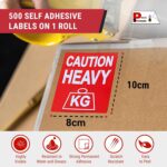 Warning Stickers ‘Caution Heavy’ Sticky Labels 80x103mm – 500 Pack Bright Red Stickers, Moving House, Heavy Label for Packing Box Labels and Storage, Adhesive Paper Sticker Pack by Price Stickers