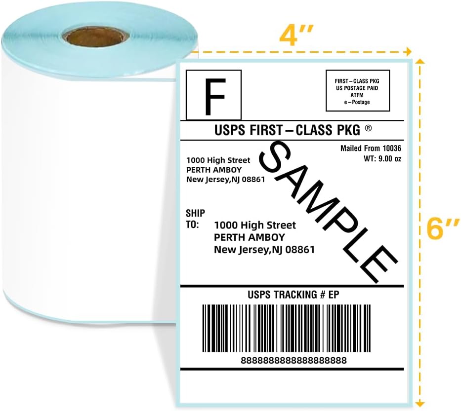 - Precise Specifications: Each roll contains 500 high-quality direct thermal labels measuring 100mm x 150mm (4″x6″) with a standard 38mm core diameter. Perforated lines allow for quick, clean, and effortless tear-off.